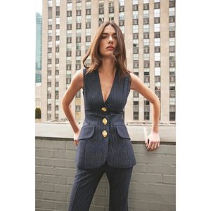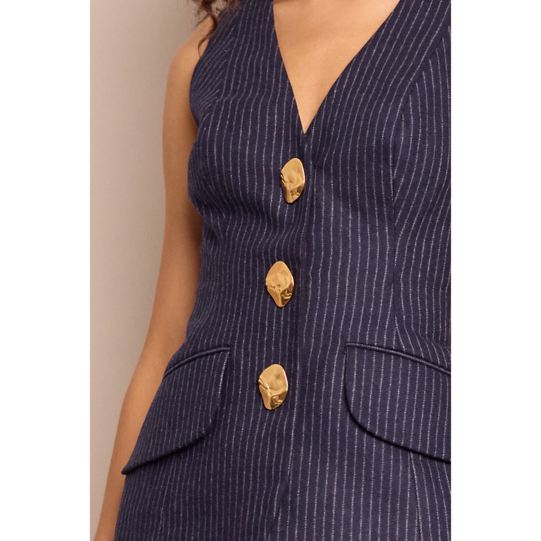 meet the wes vest in navy chalk stripe from CARA CARA.