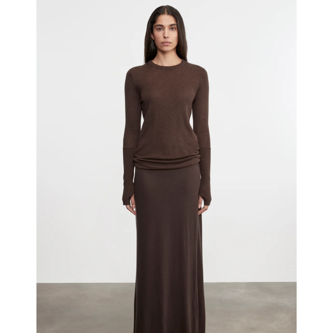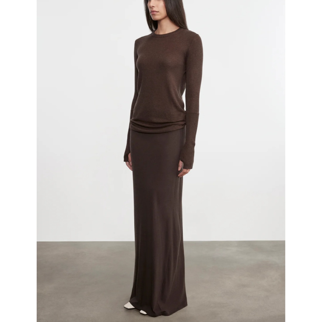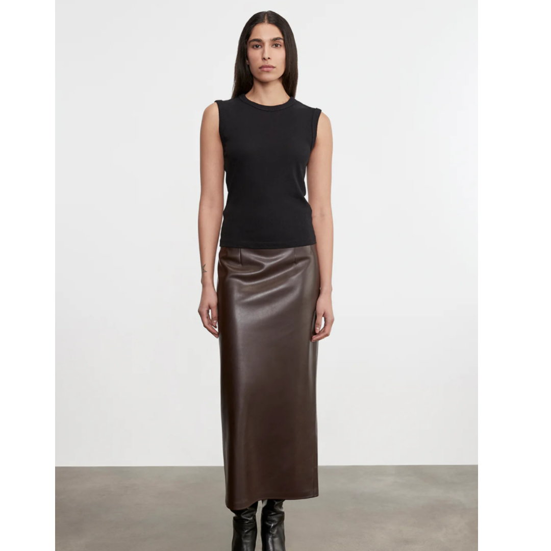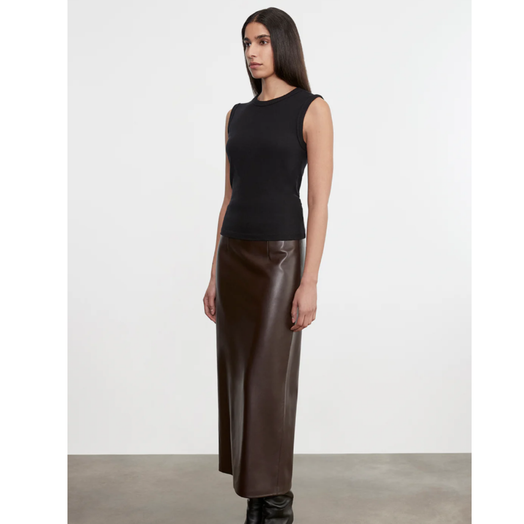 Leather Hi-Waist Curve Skirt - Dark Brown