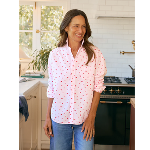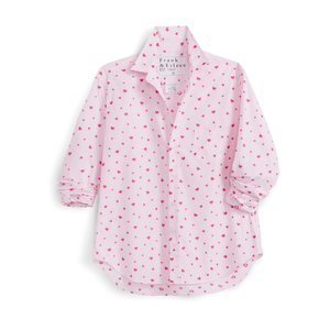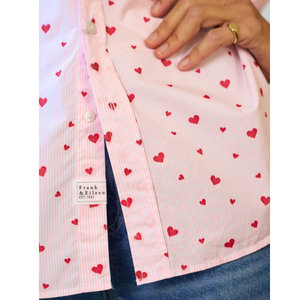 meet the eileen relaxed button-up shirt in pink stripe with hearts from FRANK & EILEEN.