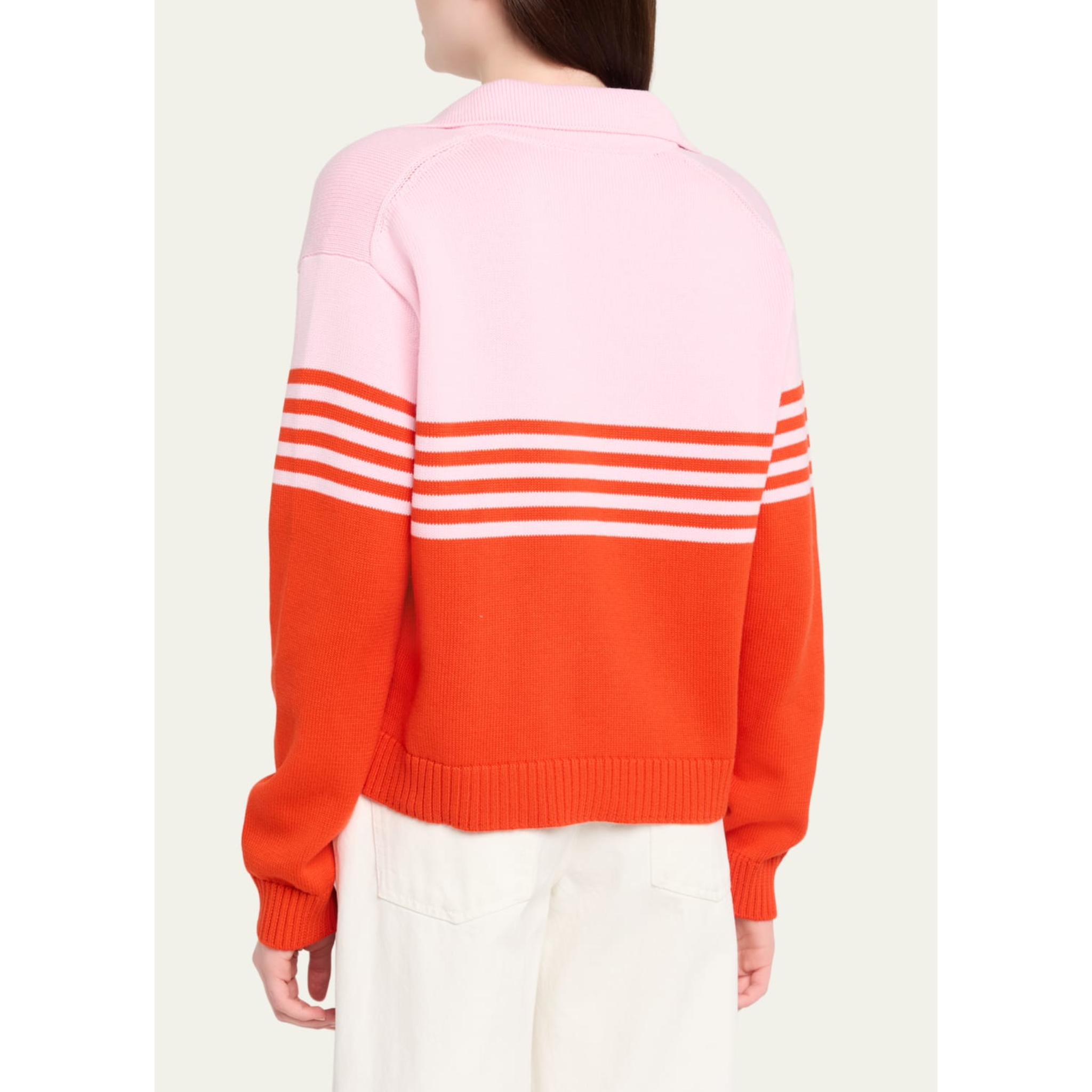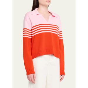 meet the jules stripe polo sweater in lobster stripe from SIMKHAI.