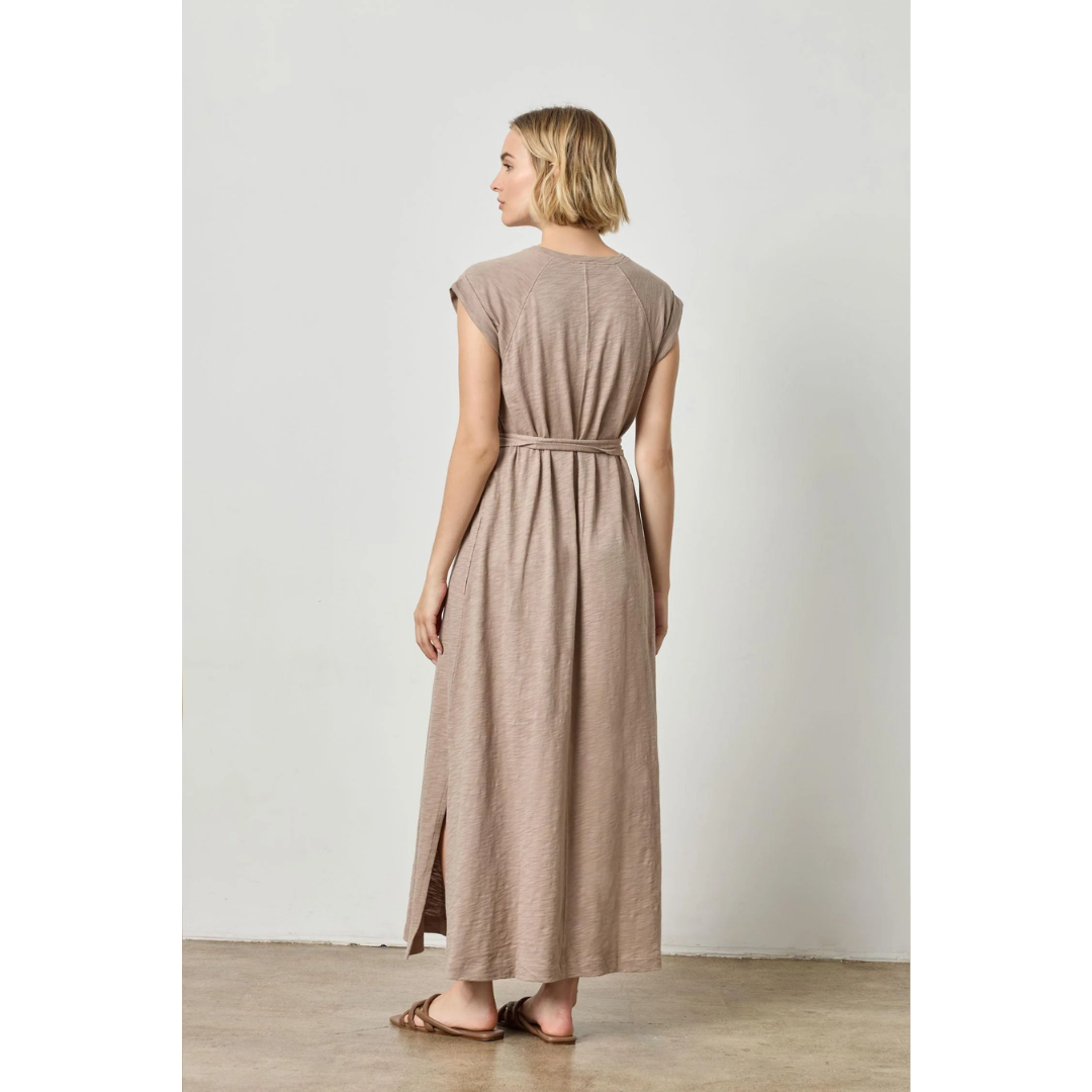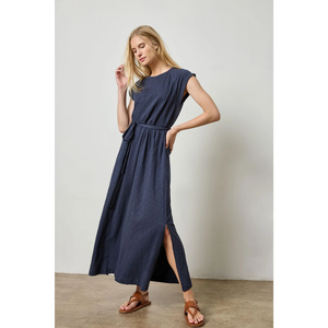 meet the saddle sleeve maxi dress in driftwood, spa and navy from LILLA P. our saddle sleeve maxi dress takes the classic tee shirt dress to the next level. made from lightweight loose knit slub fabric, this dress features side slits, pockets, and an optional self belt for versatile styling. simple yet anything but basic, it can be dressed up or paired with sandals for an effortless look. available in neutral or color options, this dress is sure to become a seasonal favorite.