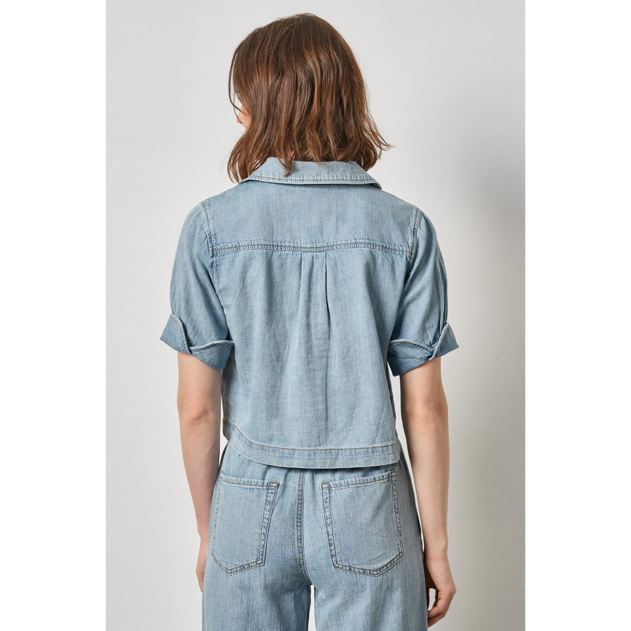 meet the denim cuffed shirt in blue wash from LILLA P.
