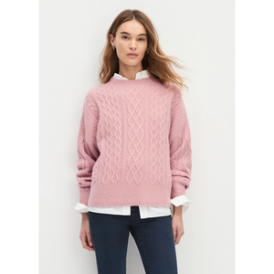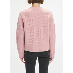 meet the oversized cable sweater in whimsical rose from FAVORITE DAUGHTER. a cable-knit sweater with just enough slouch, knit from a soft blend of cashmere and superfine merino wool. the oversized styling makes it perfect for a french tuck into your favorite jeans or layered over a slip dress for an of-the-moment look.