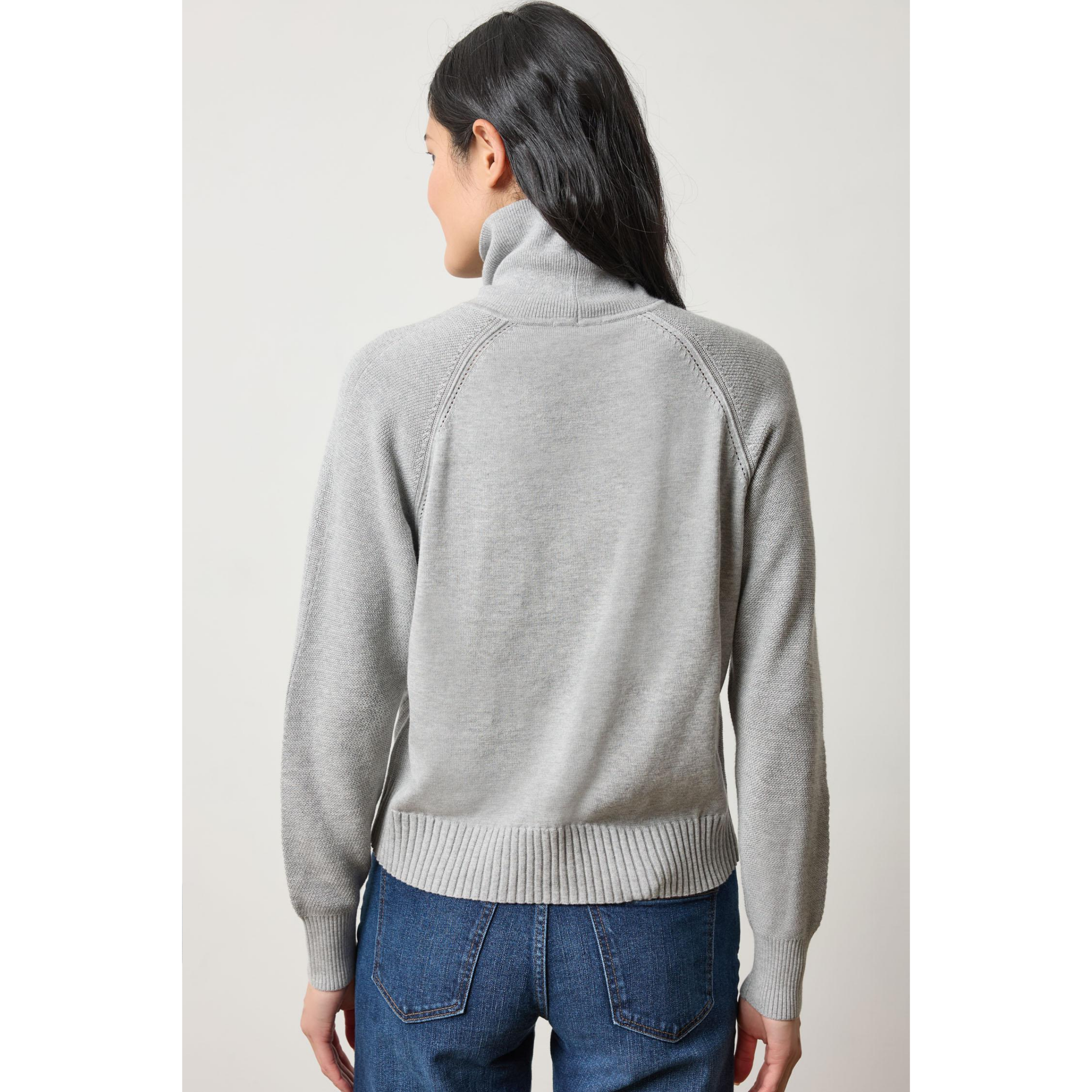 the relaxed turtleneck sweater in our cotton modal blend yarn is comfortable and easy to wear. designed with raglan sleeves and intricate stitch detailing along the sleeves, center front, and back, this style feels both classic and updated. the slightly taller ribbed hem draws in just enough for a flattering fit, making it the perfect sweater to wear all season long.