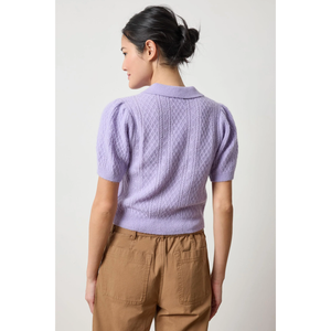meet the mixed stitch elbow sleeve polo in lavender from the brand LILLA P.