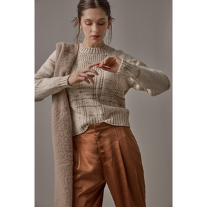meet the open stitch crewneck sweater in eggshell combo from the brand LILLA P.