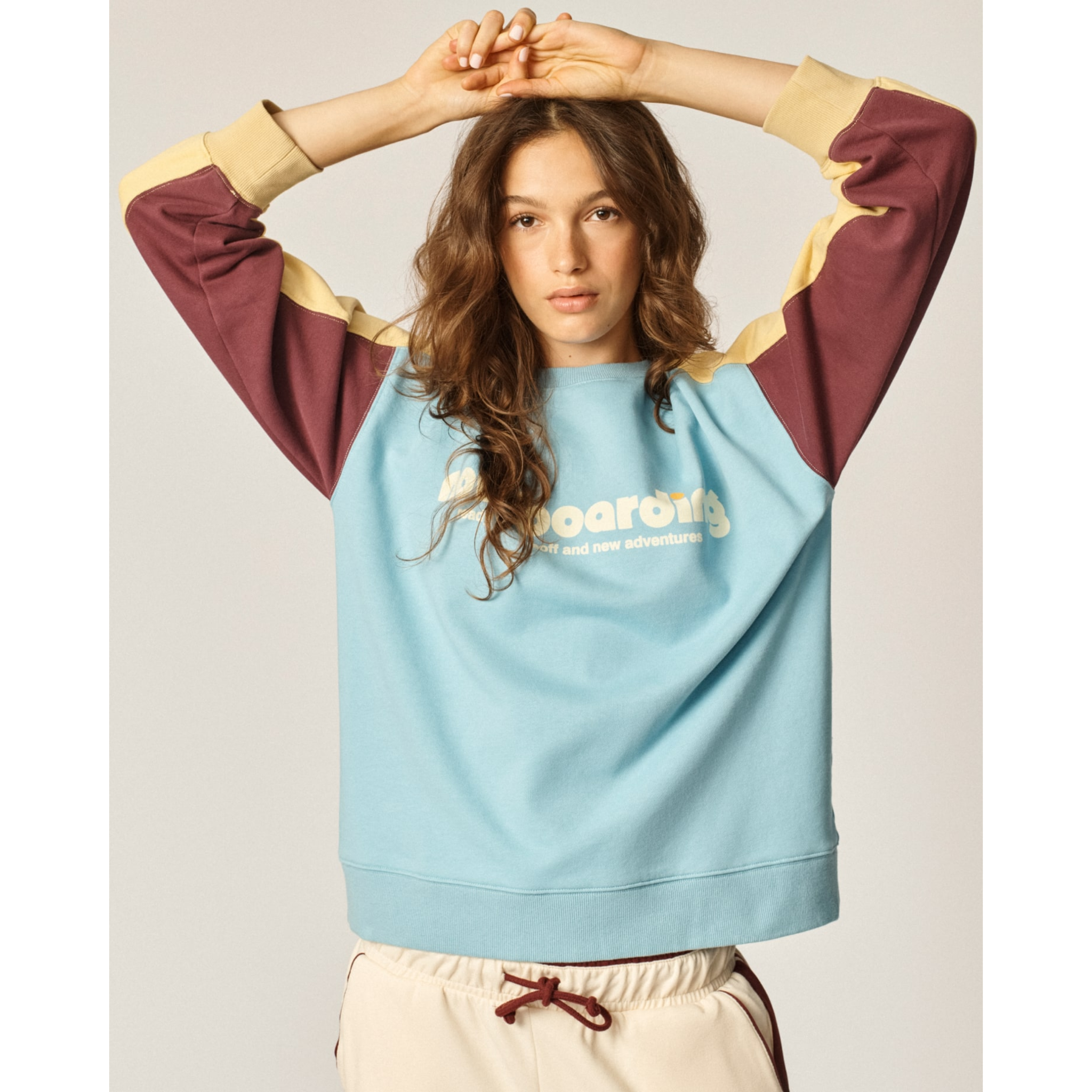 the retro-colored patchwork brushed cotton sweatshirt is a must-have for any traveler. no layovers, no delays—only comfort and style. that’s how we travel at ONCEPT. grab yours and welcome aboard.