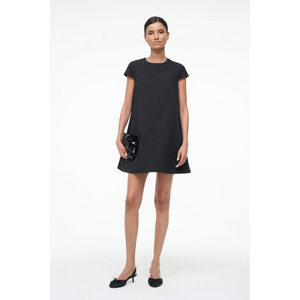 a new mini dress silhouette with a roomy fit throughout the body and cap sleeves. crafted in grosgrain.