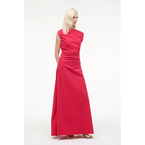 meet the phare maxi dress in cherry from STAUD. the maxi phare dress is back for spring in a punchy color update, with a draped one-shoulder neckline and a fitted waist. crafted in stretch poplin, this dress offers a light fabrication in a style you can easily dress up or down.