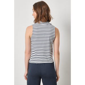 meet the sleeveless collared top in navy stripe from LILLA P.