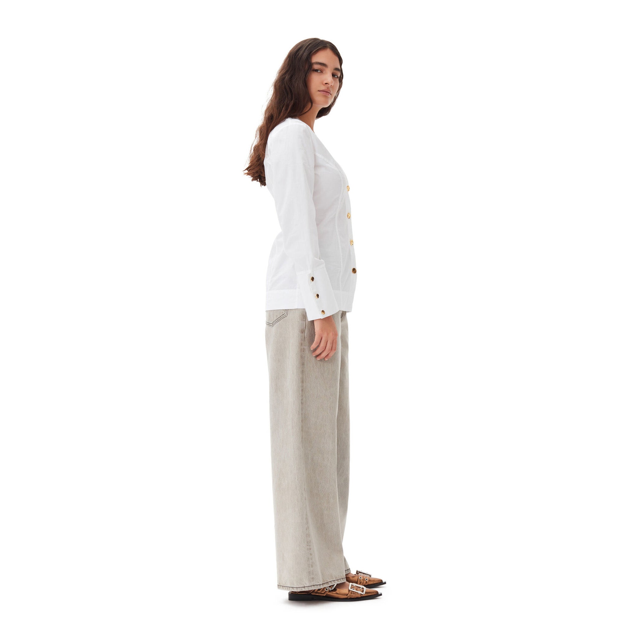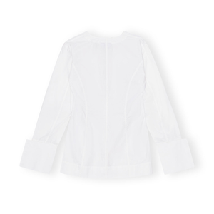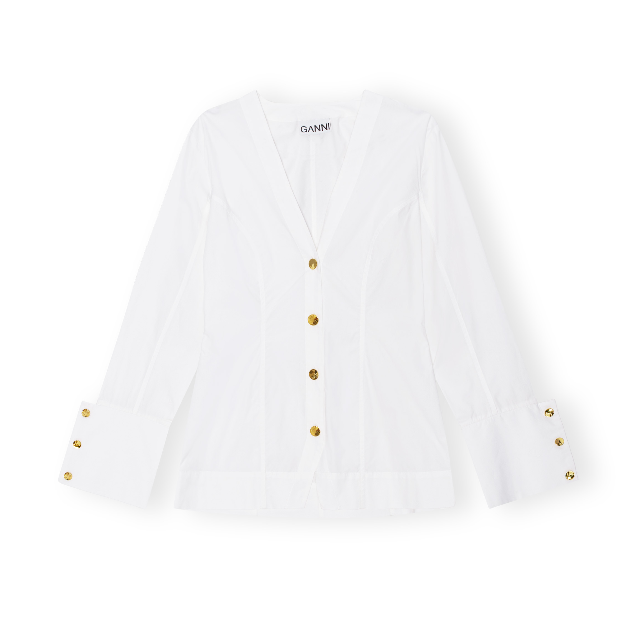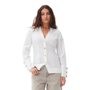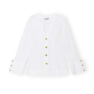meet the white cotton poplin v-neck shirt from GANNI. this