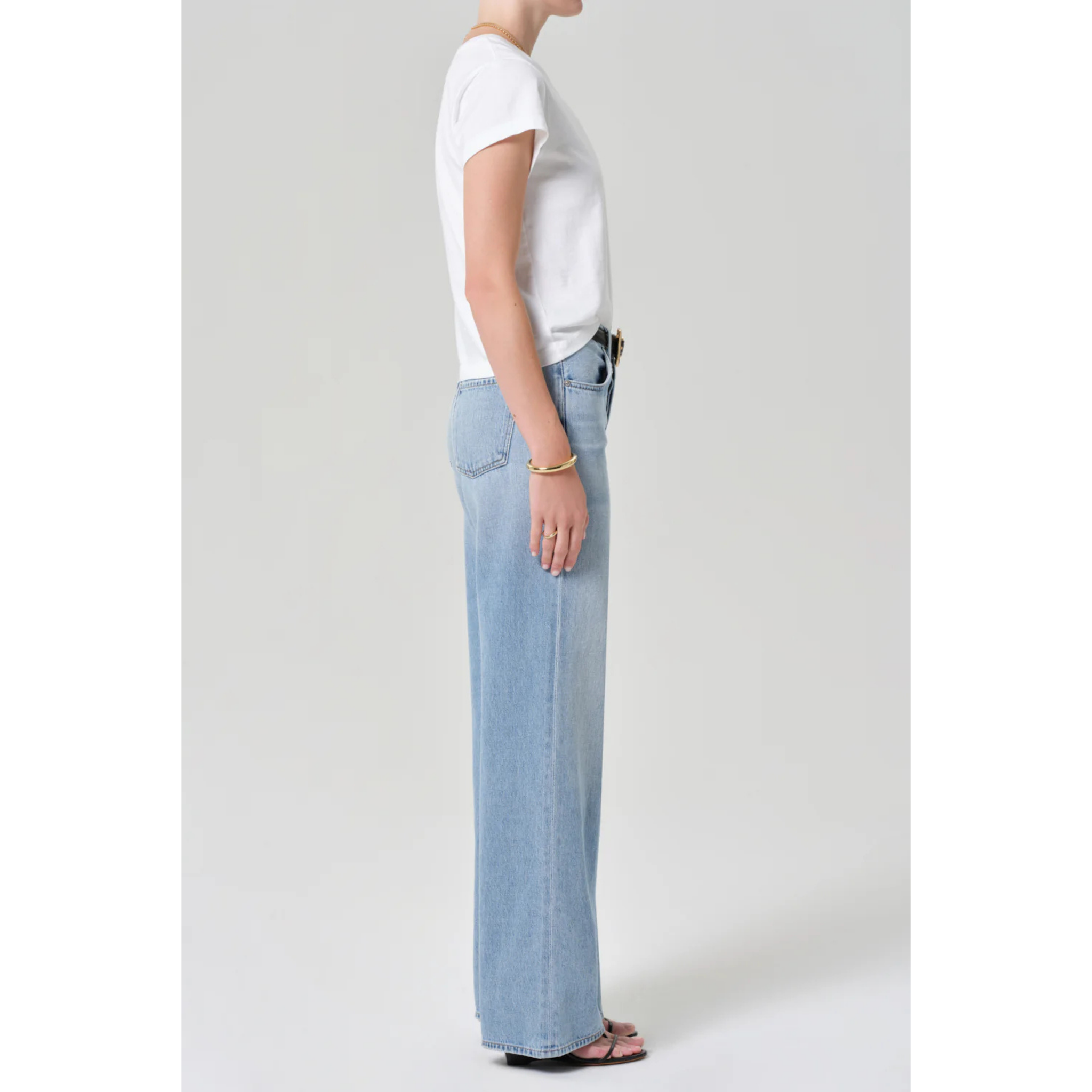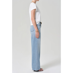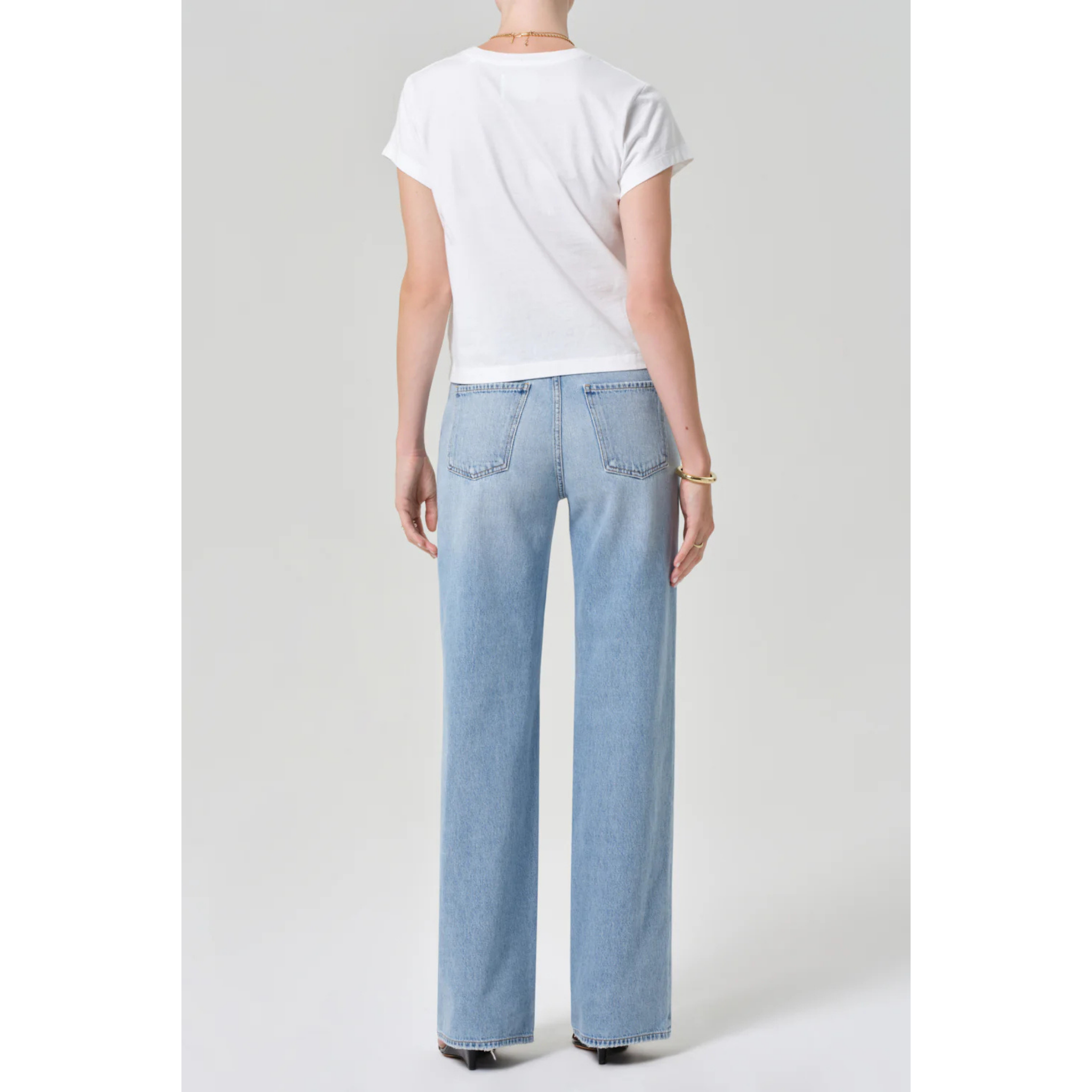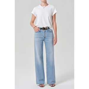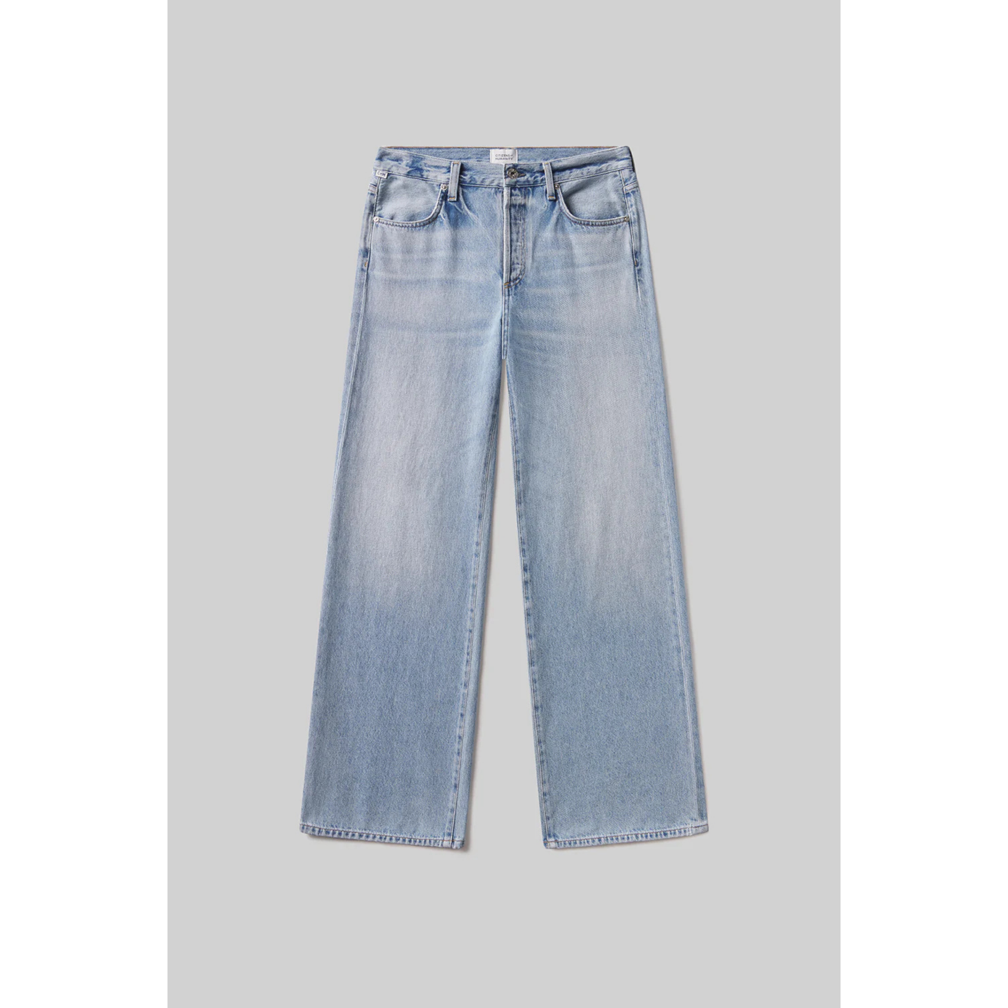 meet the annina straight leg 33" in ritual from CITIZENS OF HUMANITY. a timeless silhouette with subtle vintage character, the ‘annina’ jean features a high-rise waist and clean, straight-leg shape that drapes with effortless ease. the ‘ritual’ wash—a sun-faded light indigo with soft whiskering and fading—evokes a well-worn favorite. cut from rigid, non-stretch lightweight vintage cotton with a soft hand, this pair combines structure and authenticity with everyday comfort. style with a relaxed oxford or cropped jacket to echo its laid-back sophistication. this fit is true to size.