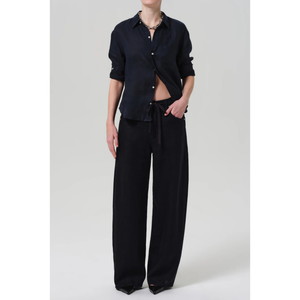 meet the brynn drawstring linen trouser in true navy from CITIZENS OF HUMANITY. offering a relaxed fit with a comfortable drawstring waist, this laid-back linen pant delivers effortless style and versatility—perfect paired with tonal linen pieces or a matching tank for a chic, vacation-ready look.