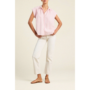 meet the della shirt in pink stripe from TROVATA.
