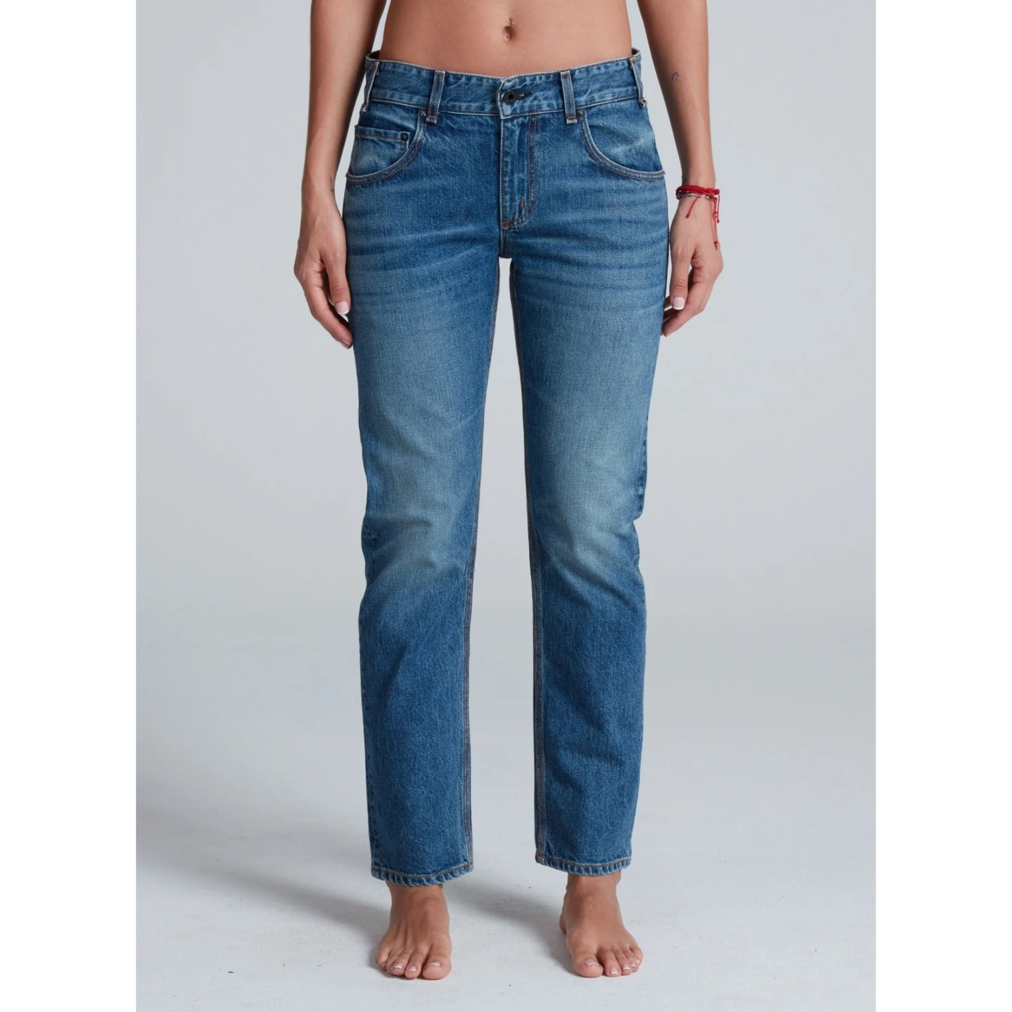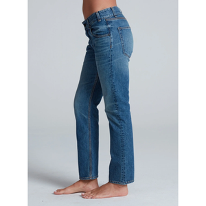 meet the derby jean in chill from ASKK NY. this modern slim-straight jean features a mid-rise and ankle-grazing length, designed to fit close through the hips with a straight, easy leg, crafted from japanese denim. finished in a versatile wash, it’s an effortless everyday staple that works with sneakers, sandals, or heels.