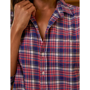 meet the eileen relaxed button-up shirt in white and black with red plaid from FRANK AND EILEEN.