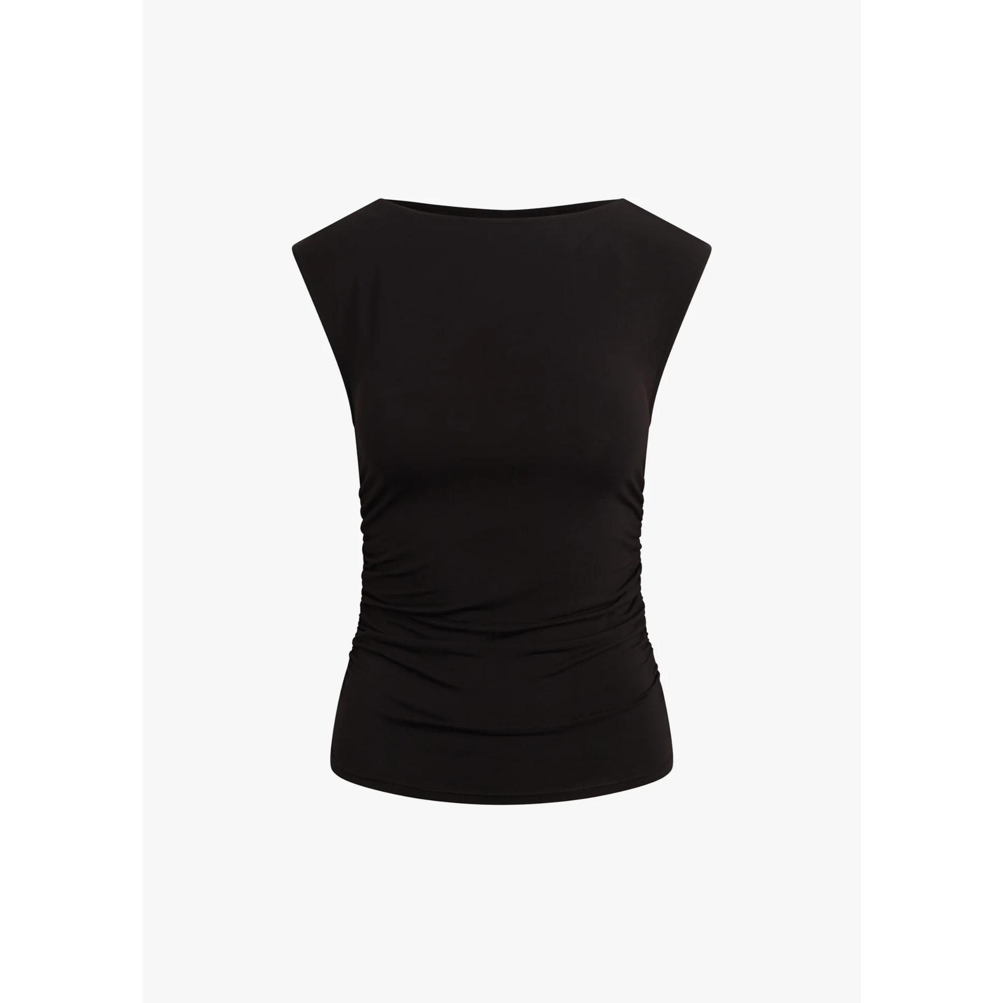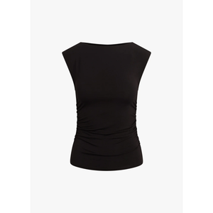 meet the limitless top in black from FAVORITE DAUGHTER. this wide-shoulder tank features side ruching and a sleek, flattering silhouette, crafted from buttery soft modal jersey for all-day comfort. endlessly versatile, it’s an easy staple that dresses up or down.