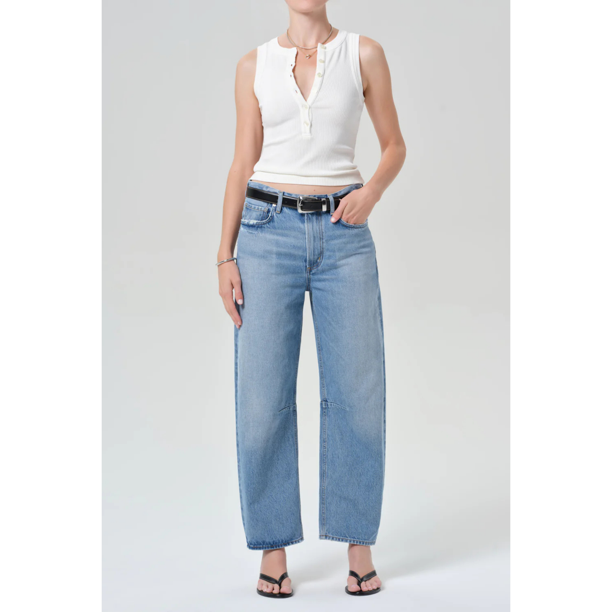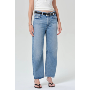 meet the miro long relaxed jean in cupid from CITIZENS OF HUMANITY. the ‘miro’ offers a modern, relaxed take on the tapered silhouette with a subtle barrel leg and clean, elongating lines. crafted from lightweight, non-stretch regenerative cotton denim, this version is washed down for an ultra-soft, weightless feel. this fit is true to size.