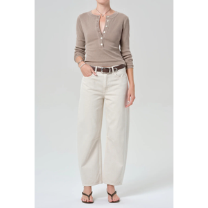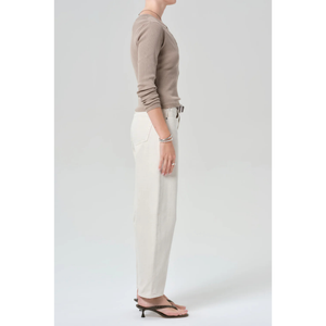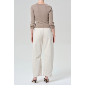 meet the miro relaxed jean in almondette from CITIZENS OF HUMANITY. the miro jean offers a slightly relaxed top block with a modern, tapered take on the barrel-leg silhouette. crafted from rigid, non-stretch denim with an authentic vintage feel, this women’s jean combines structured design with timeless character. effortlessly versatile, it pairs perfectly with everything from crisp shirting to relaxed knits. this fit is true to size.