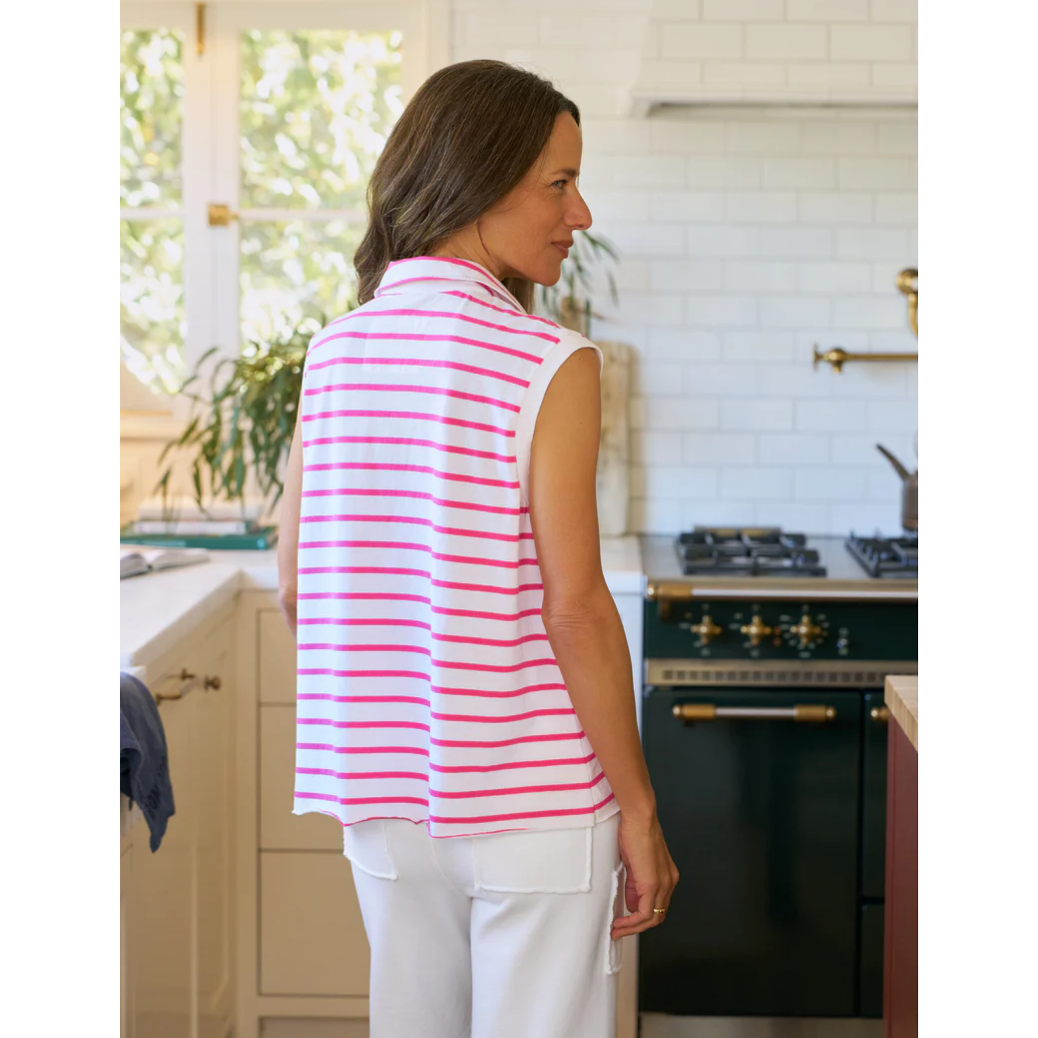 meet the olivia popover henley tank in lotus stripe from FRANK & EILEEN.