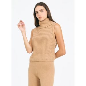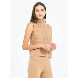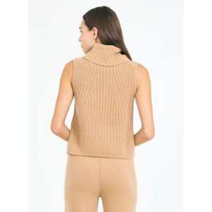 crafted from 100% cashmere, this timeless vest combines the elegance of luxe knitwear with the laid-back feel of a chunky rib texture. featuring a relaxed turtleneck, it’s perfect on its own or layered over your favorite lightweight tops for a chic, effortless look.