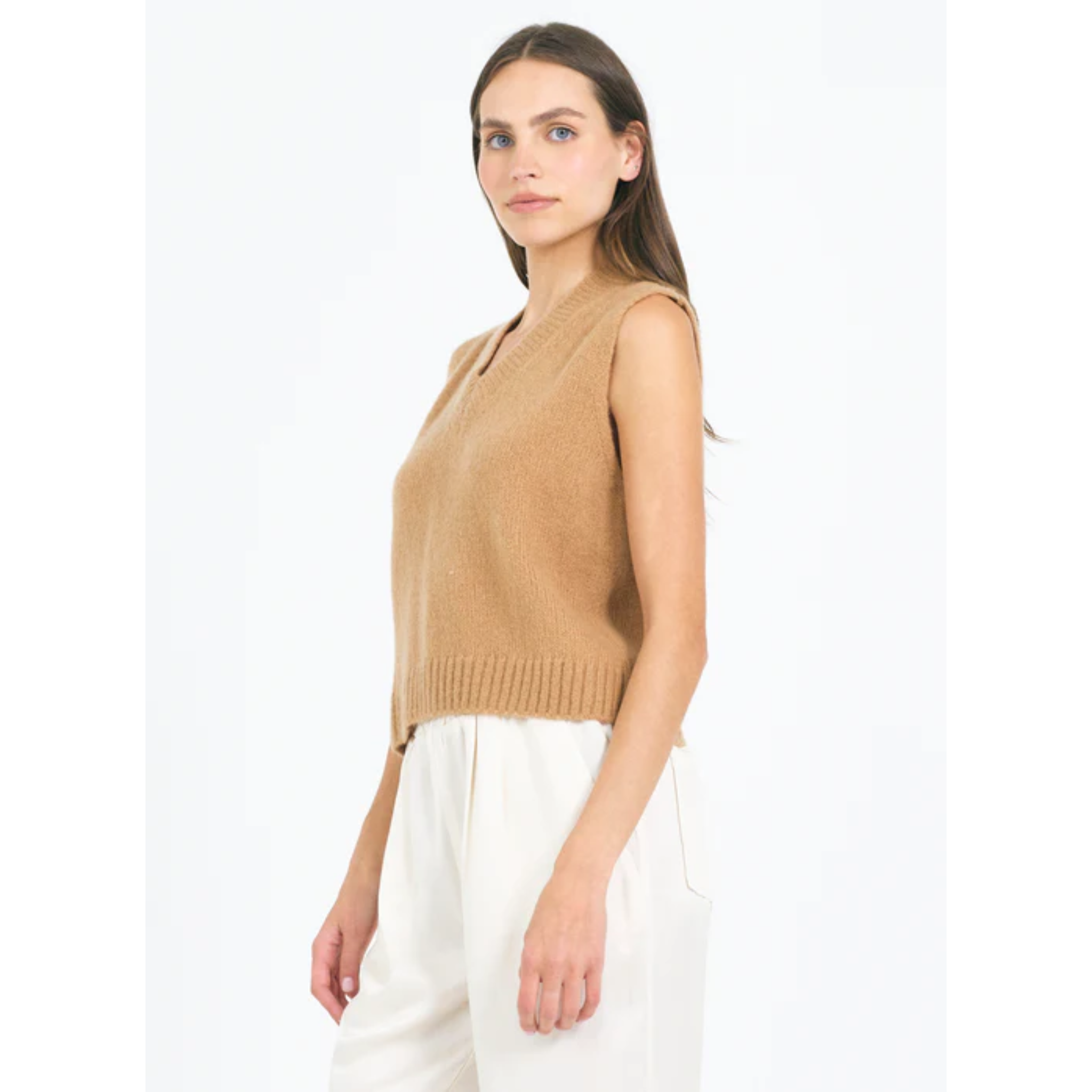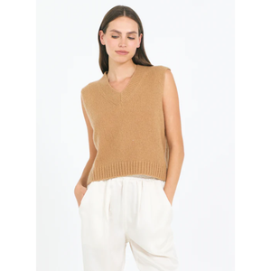 a modern take on classic knitwear, this vest is crafted from a soft and lightweight merino wool and cashmere blend. featuring a ribbed v-neckline and slightly cropped fit, it’s an elevated essential that adds a cozy, polished touch to any look.