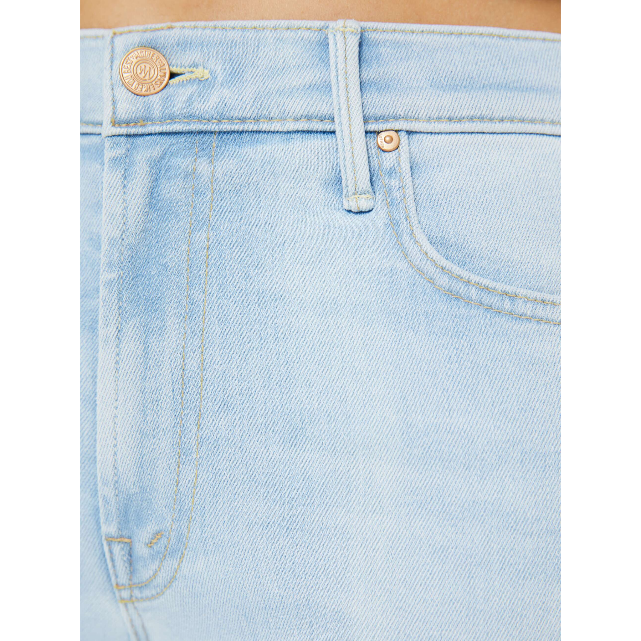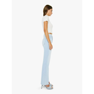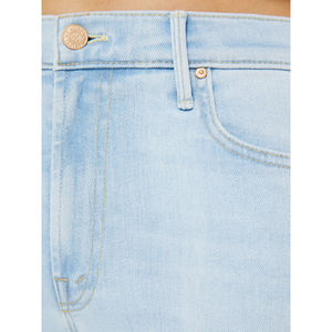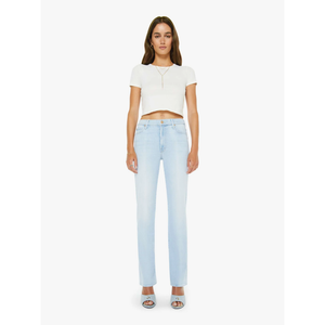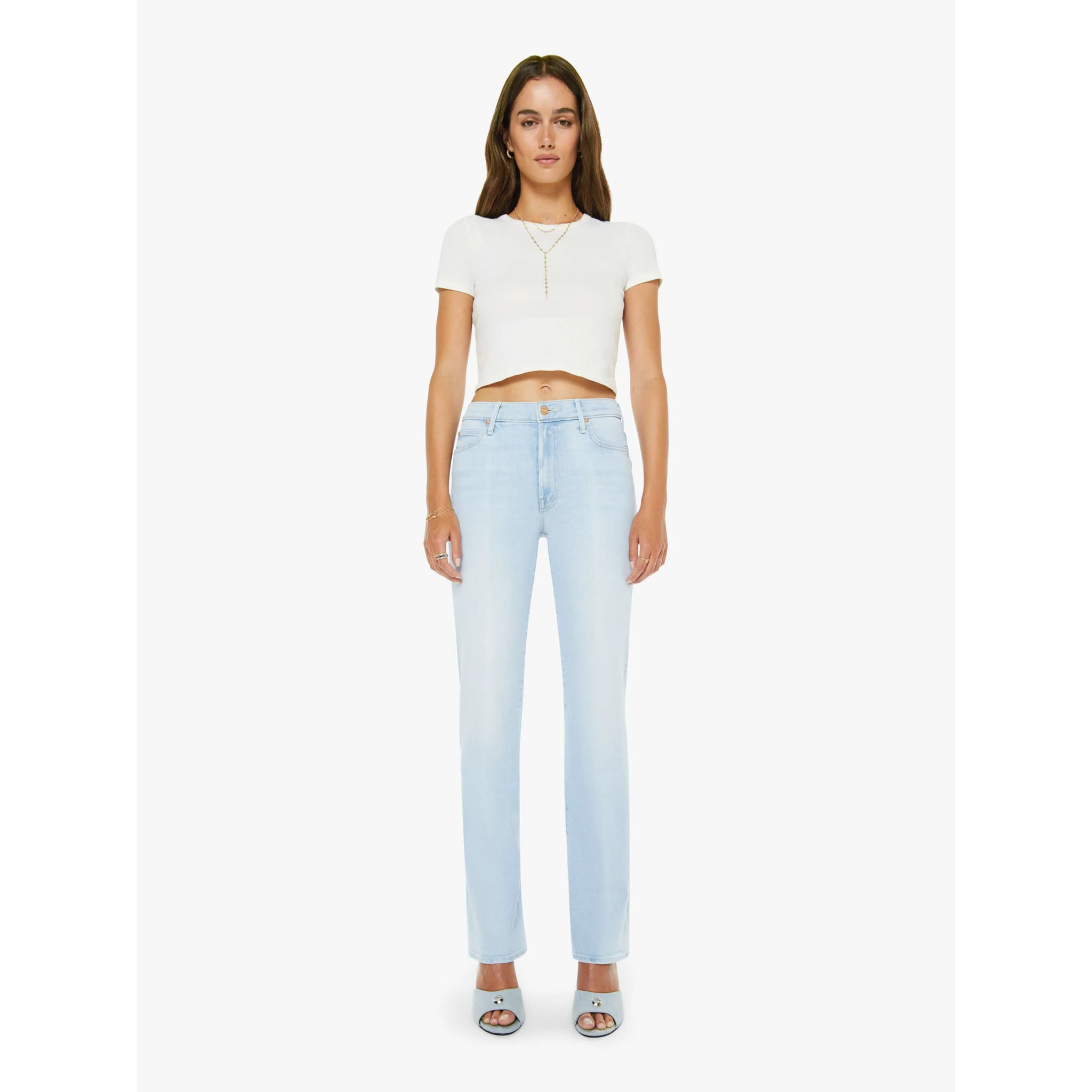 a high-rise straight leg jean with a clean, full-length silhouette and zip fly closure. crafted from stretch denim in a light blue wash with soft fading throughout for an easy, everyday feel. made in los angeles utilizing fine imported materials.
