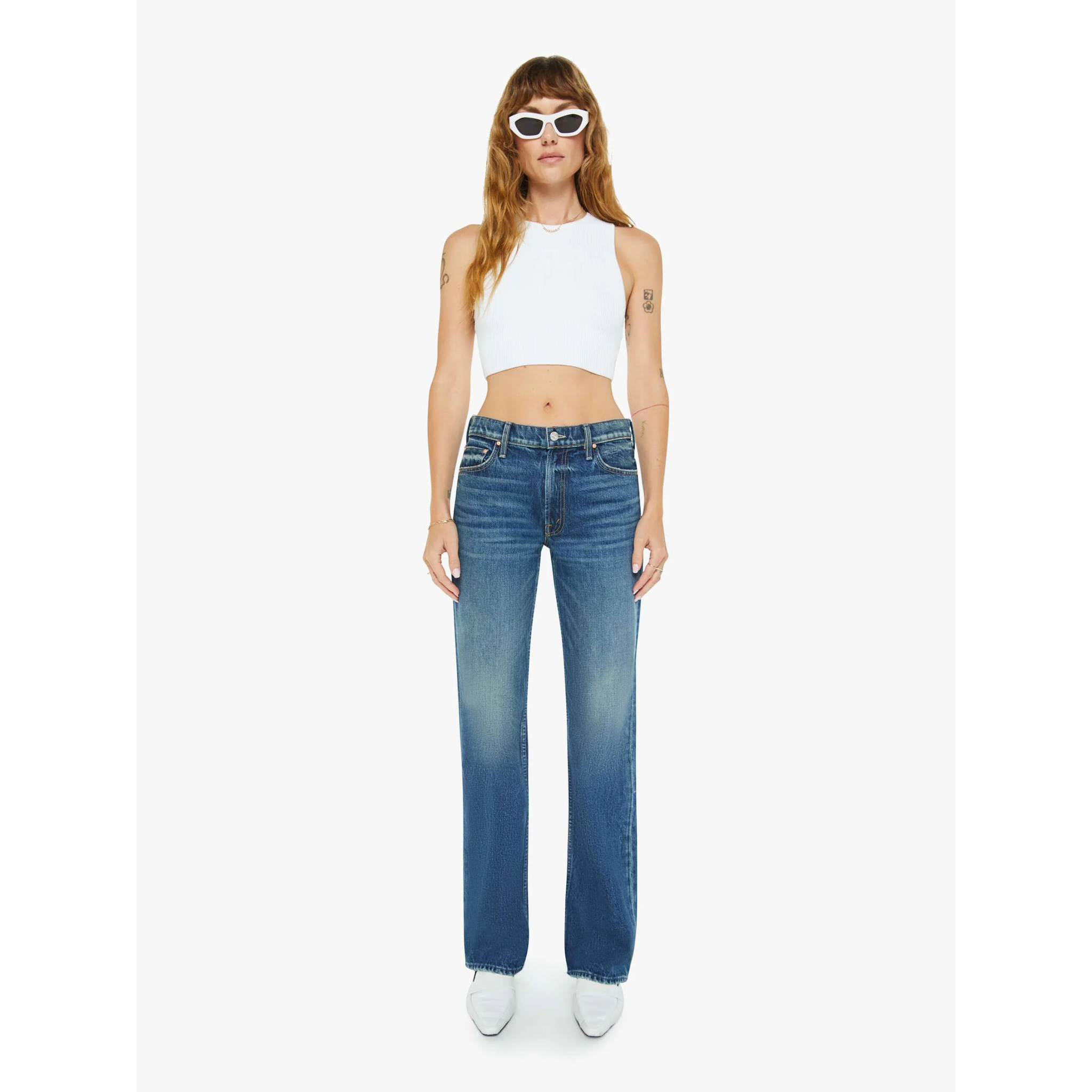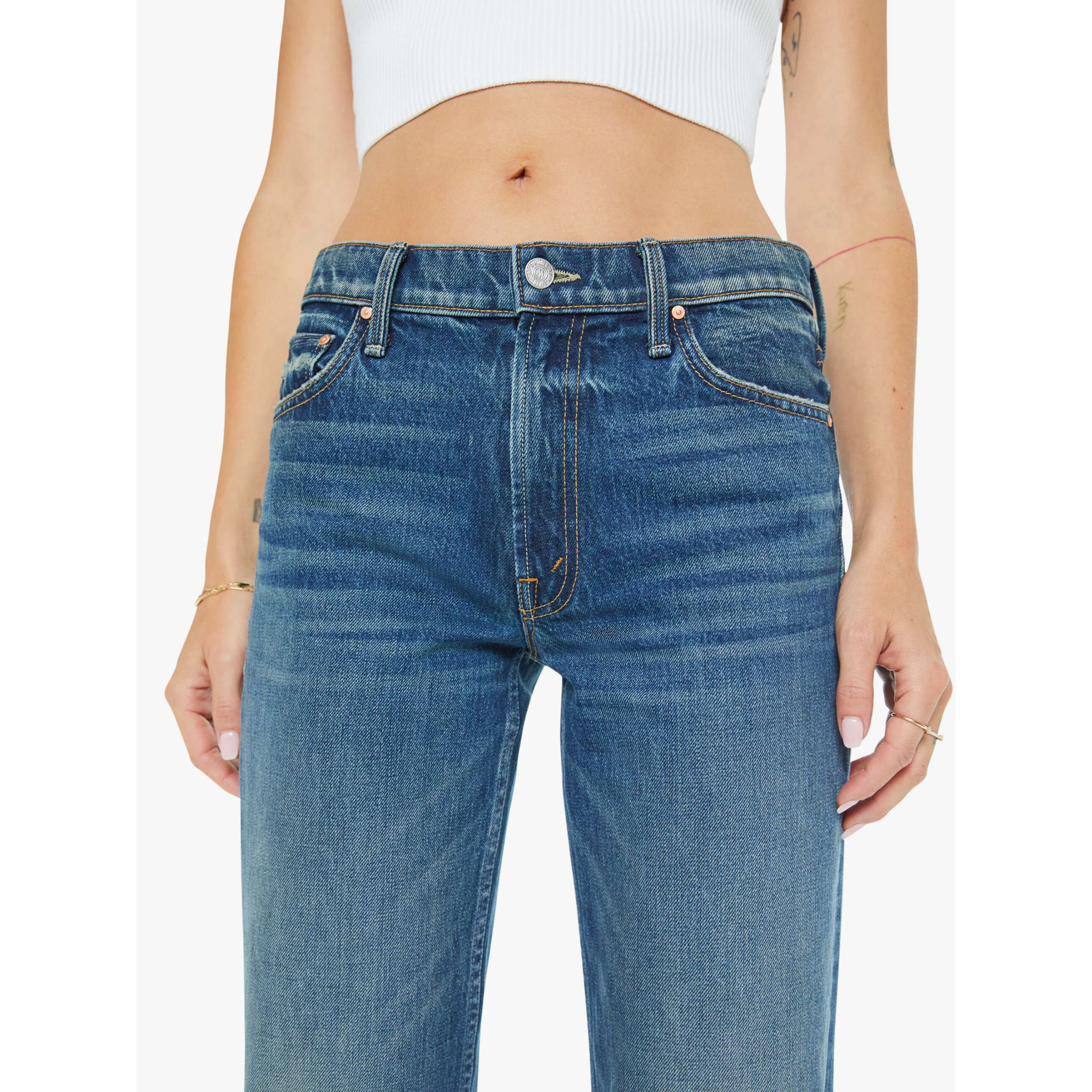 a fit designed in collaboration with longtime model and friend paige reifler, the reifler channels the best of the 70s, 80s, and 90s while transcending these iconic decades. featuring a mid rise, straight leg with a bit of a kick, full-length inseam, and distressed hem. made from superior 100% cotton denim, after midnight is a classic blue wash with subtle fading, whiskering, and distressed details for a slightly worn-in look that embodies 90s grunge.